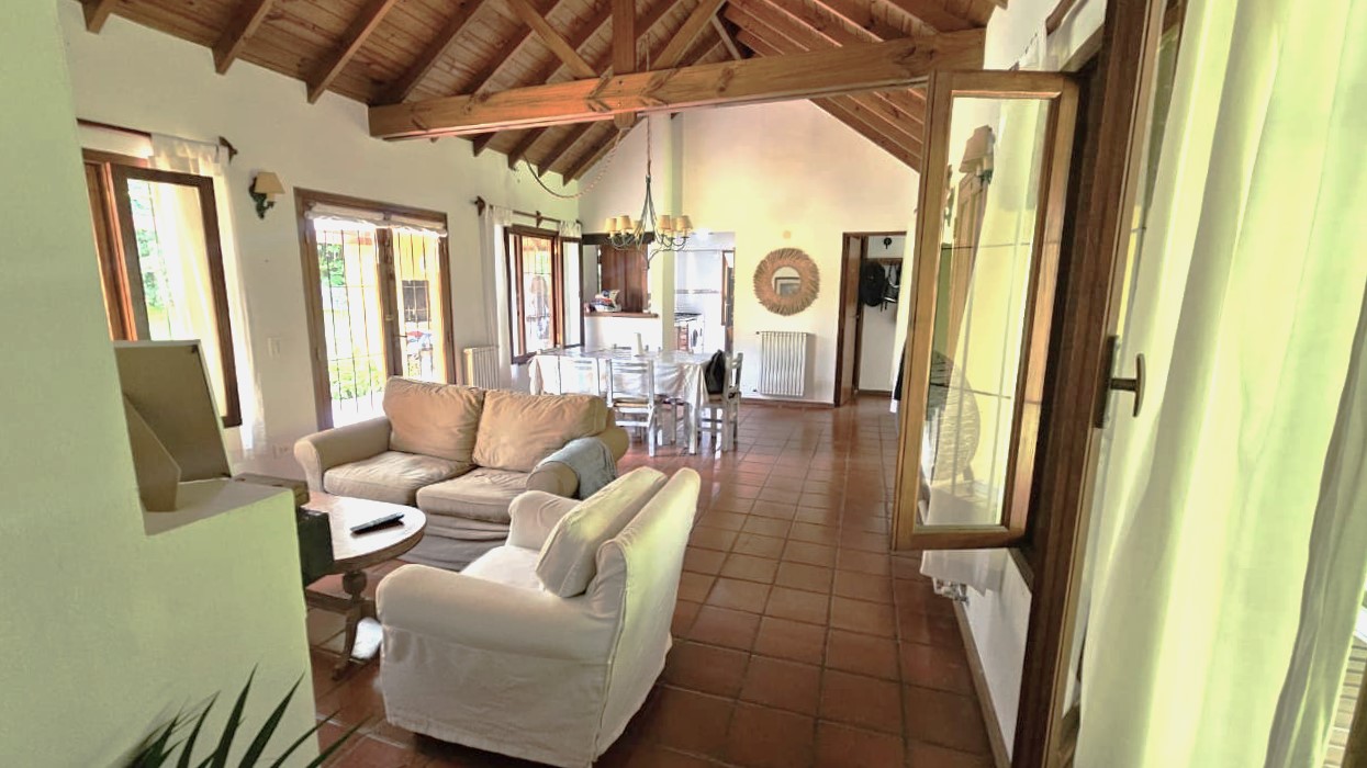 Living con hogar a leña, integrado al comedor