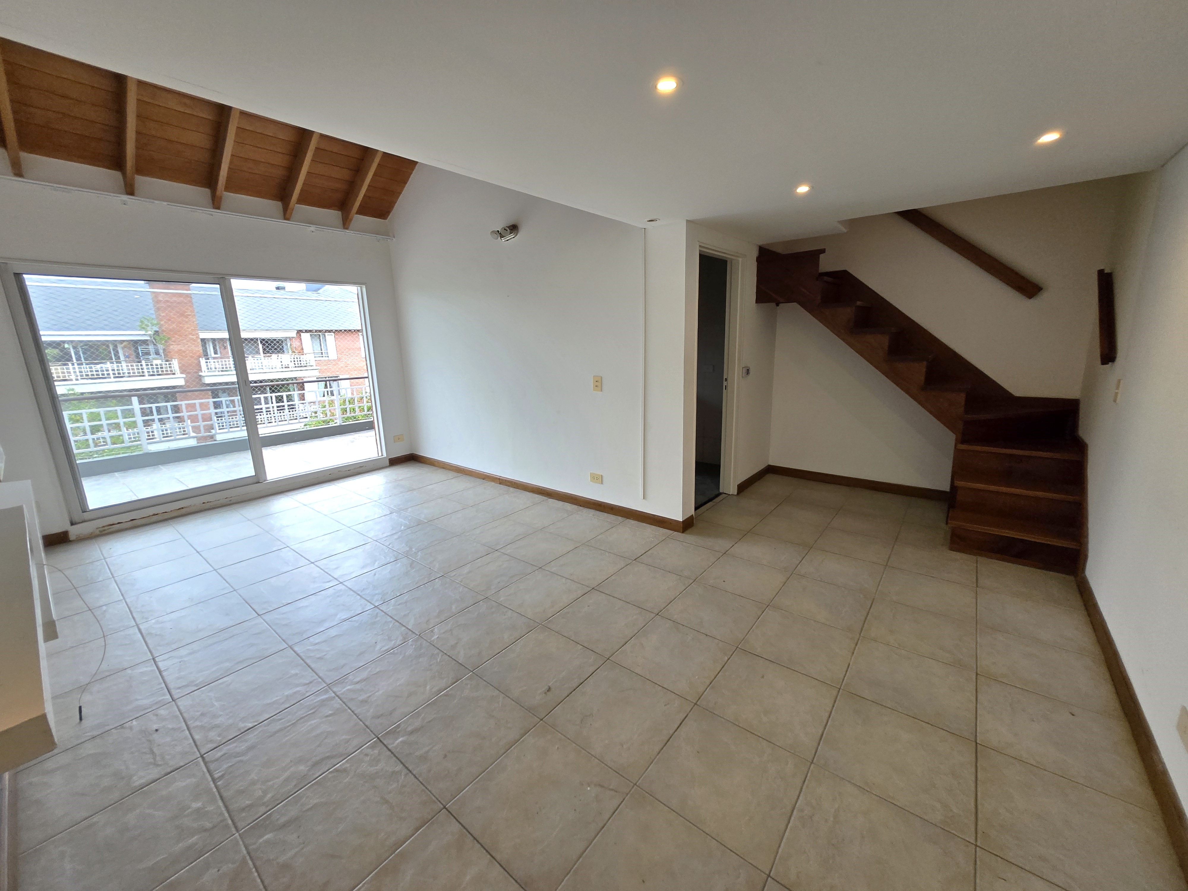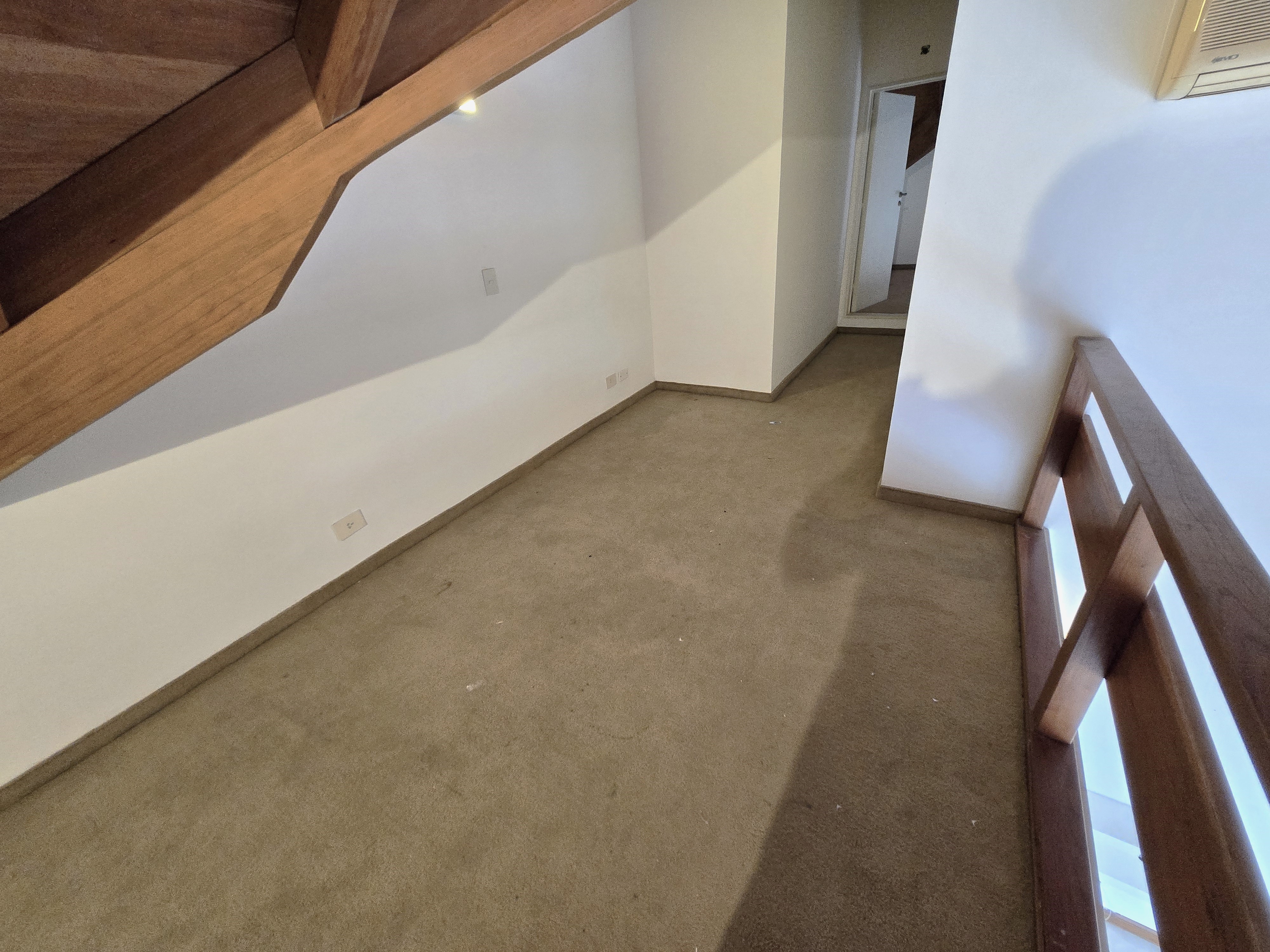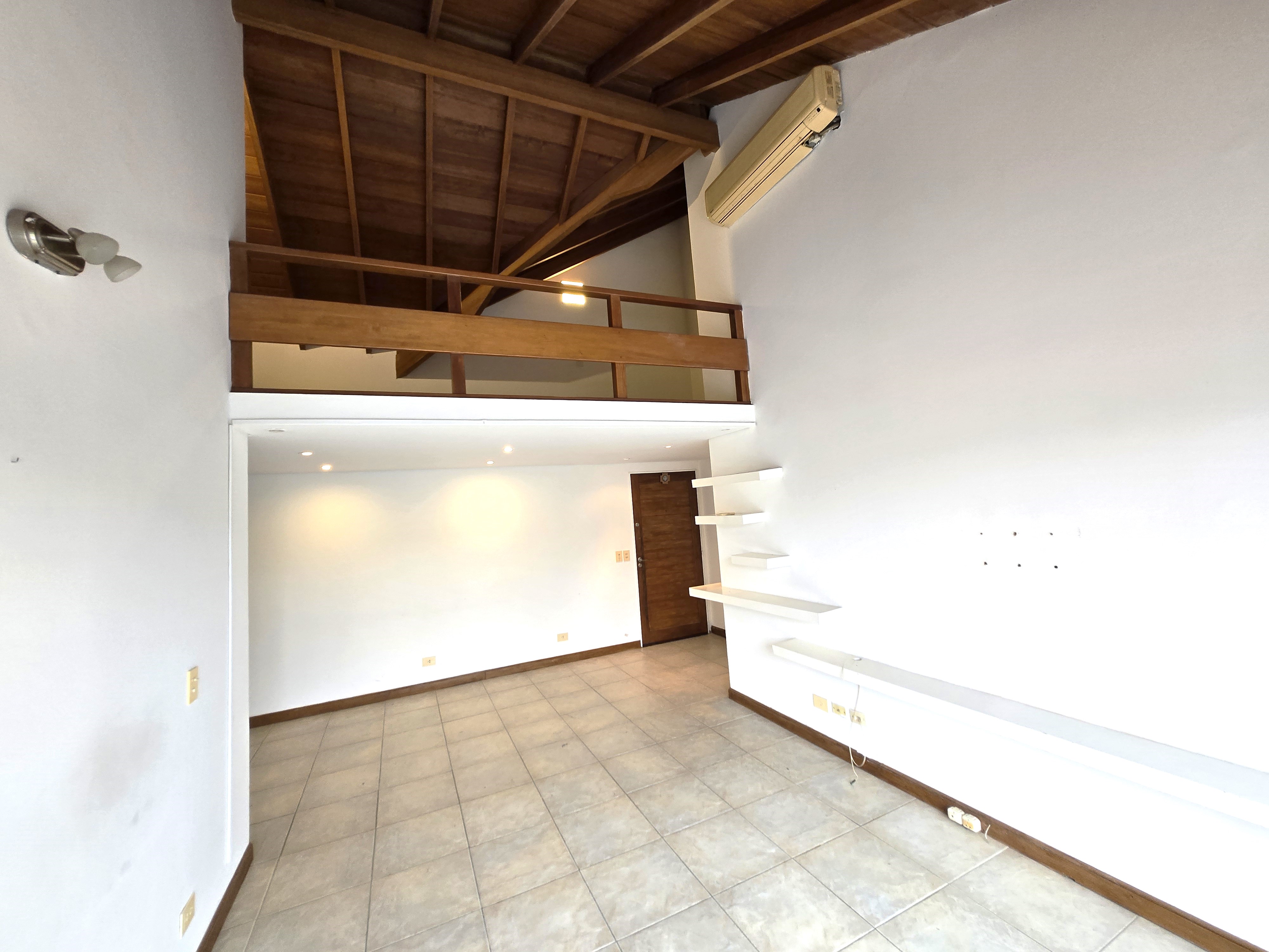 Living comedor con entrepiso que funciona como un escritorio o lugar de home office.