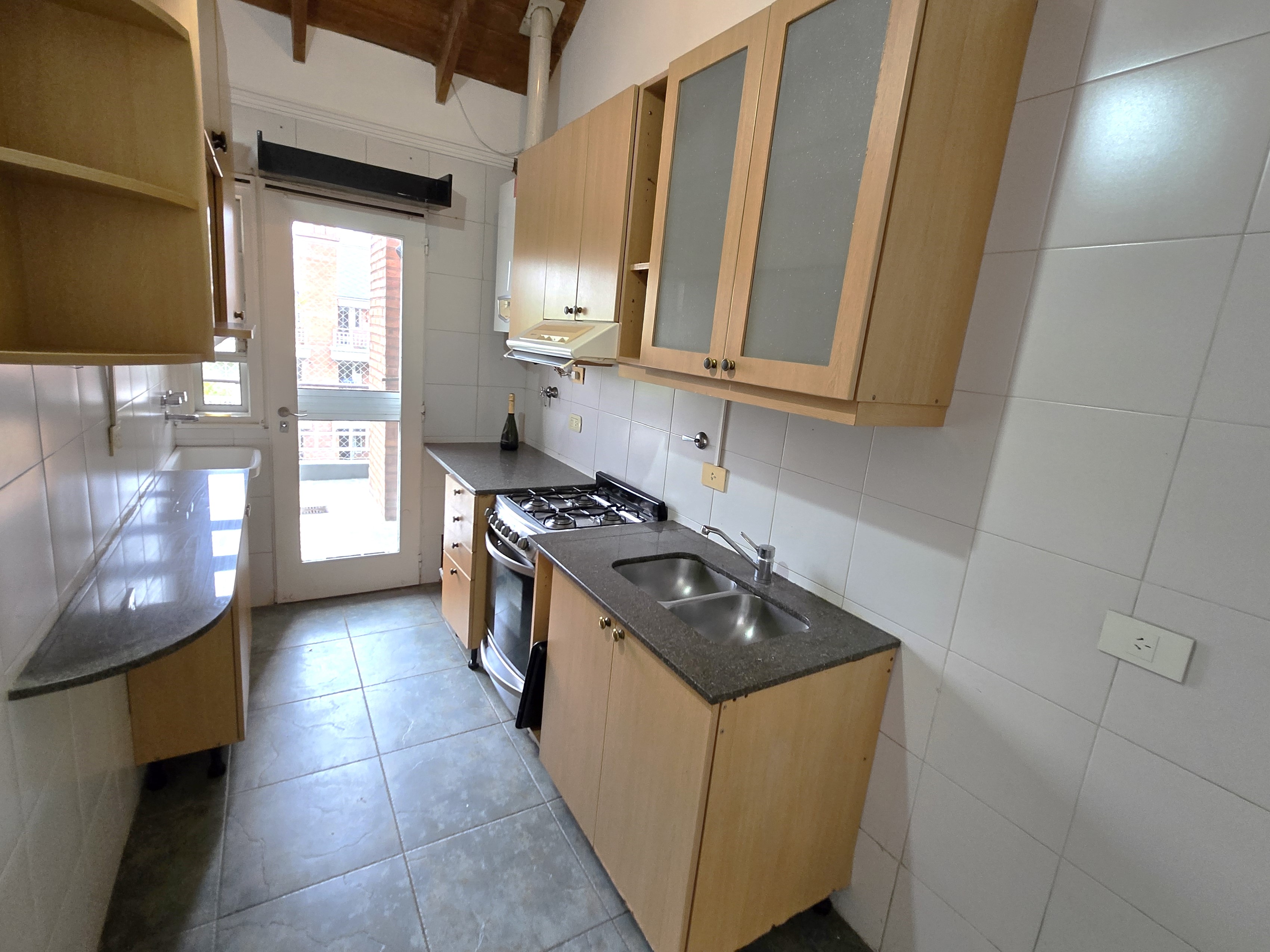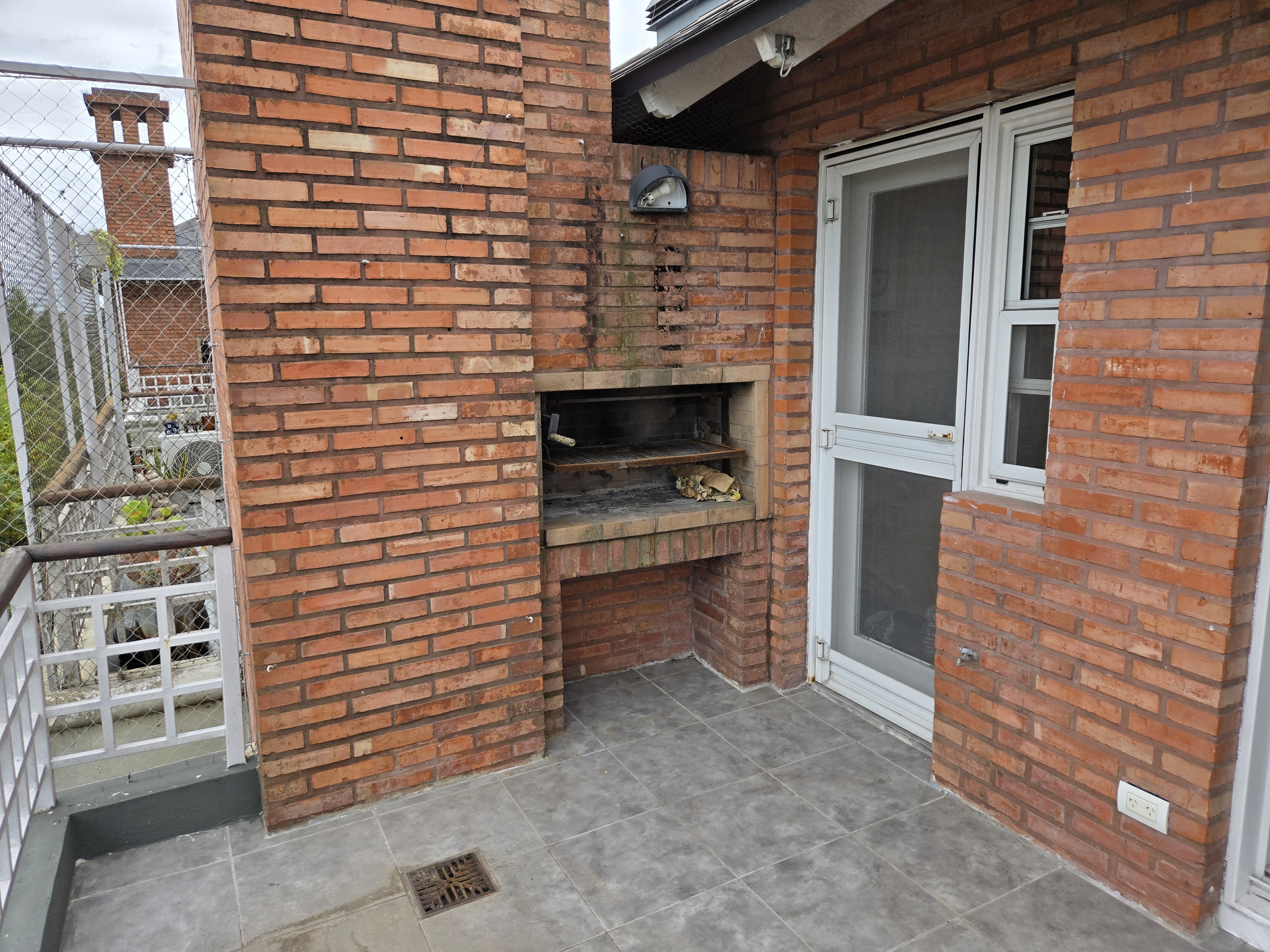 Living y comedor en L cocina, ambos ambientes con salida a terraza con parrilla.